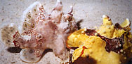 This decorator crab, Hoplophrys oatesii, smaller than a 5¢ coin, has soft coral grown on its back for camouflage. Location of this fragile little critter is undisclosed for its preservation.