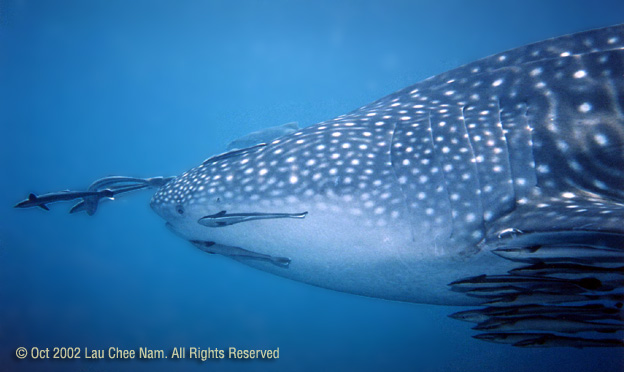 25-27th Oct 2002 - Whale Shark Alert!!! At Rayner's Rock a 7 metre gentle beauty was spotted feeding on jellyfish at 40ft of calm waters!!!
